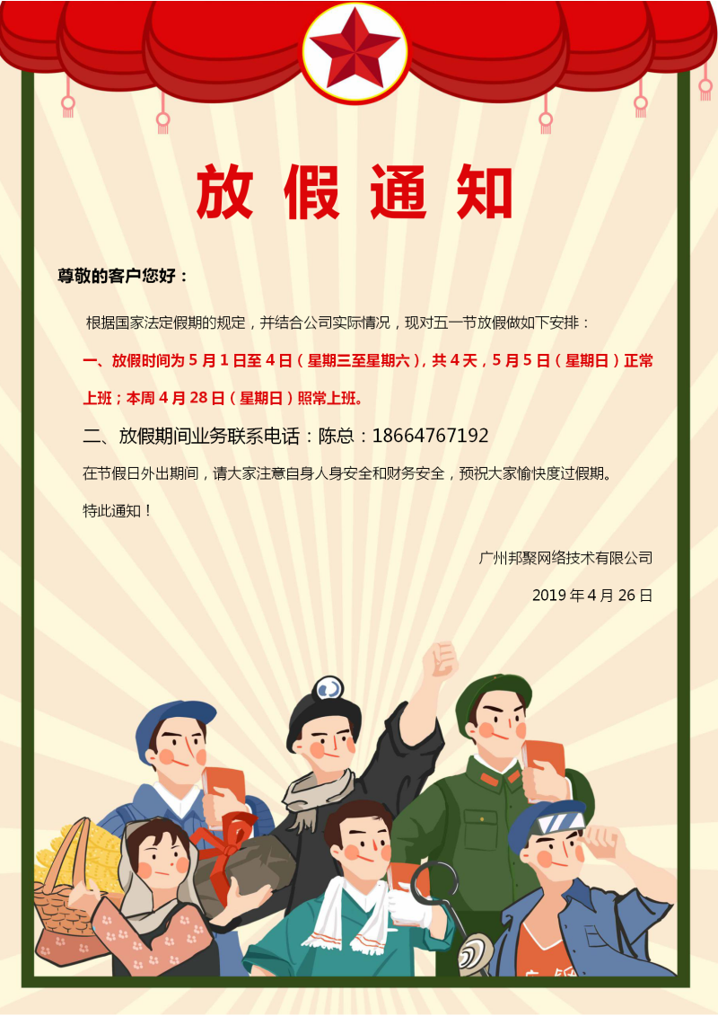 關(guān)于2019年五一放假安排通知